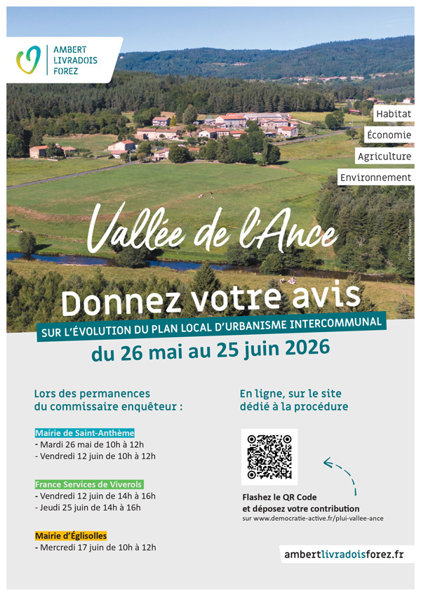 Enquête publique unique relative aux évolutions du PLUI de la Vallée de l’Ance (modification n°1 et révision allégée n°1)